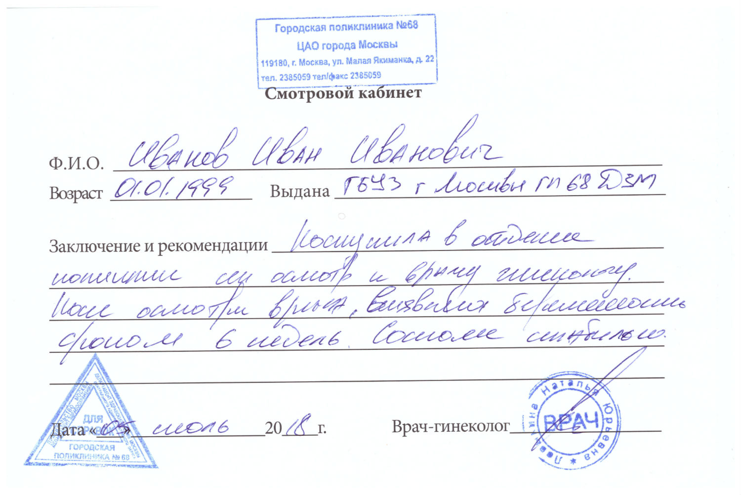 Если пациентка имеет жалобы на состояние здоровья, хронические заболевания, необходимо обязательно посетить профильного доктора. Но как быть, если бланк формальность для исполнения требований законодательства? Можно купить справку от врача гинеколога, чтобы не проходить неприятный осмотр и не сдавать внушительный комплекс лабораторных анализов.