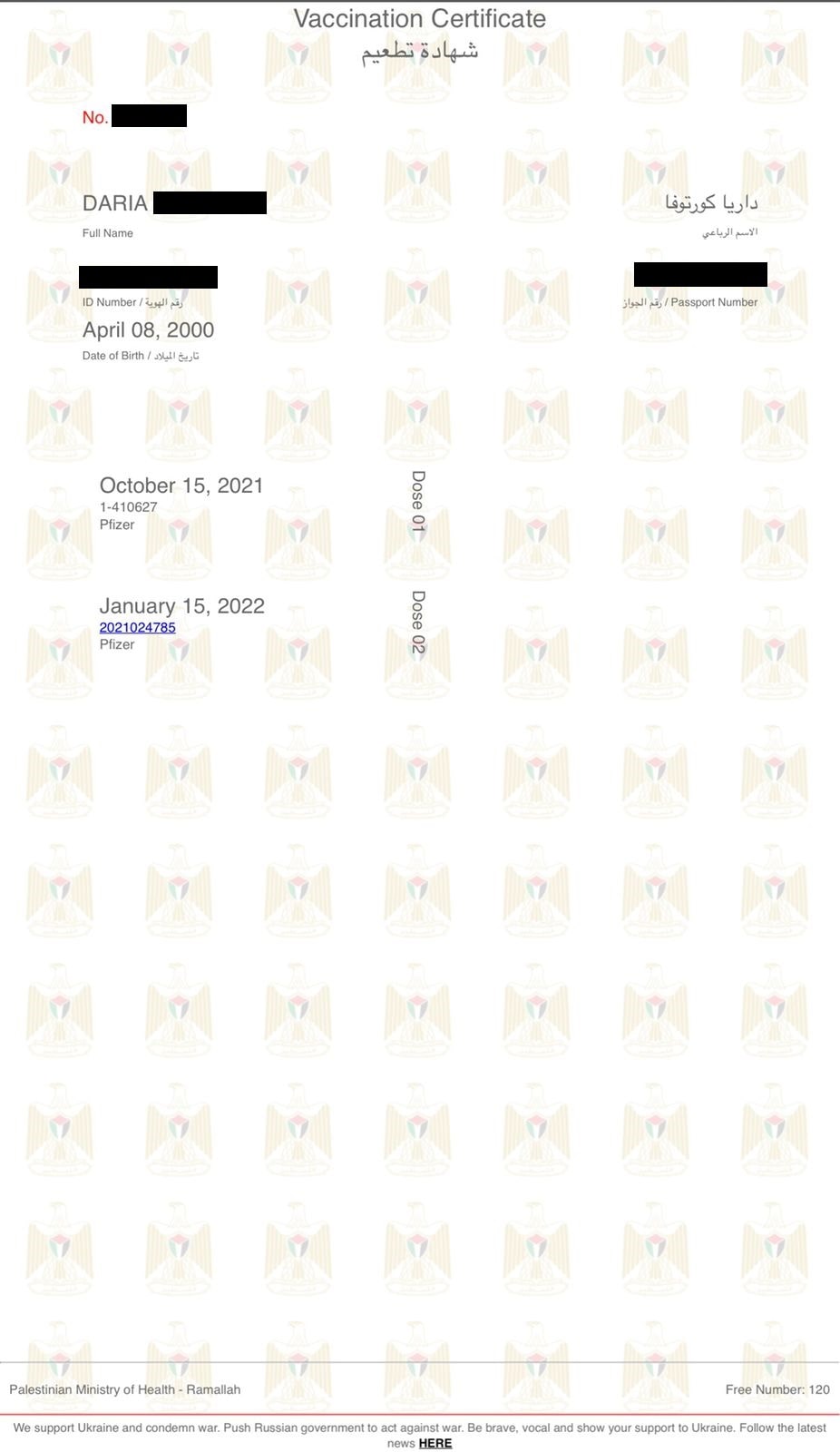 - подлинность сертификата о вакцинации от коронавируса Pfizer.