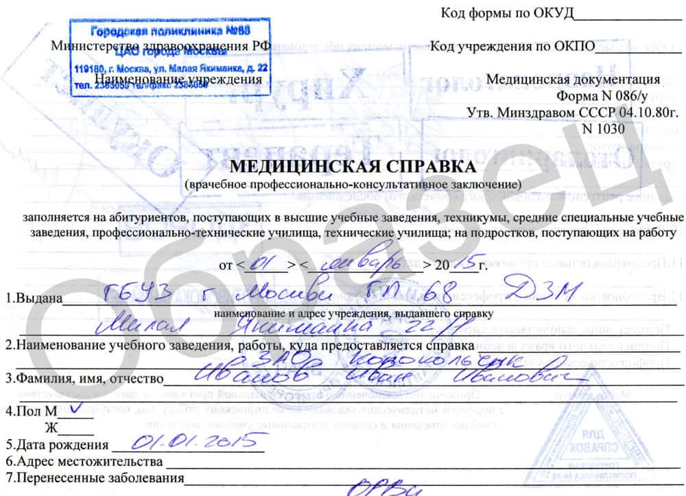 Любая справка нужна для подтверждения состояния здоровья, по которому подбираются условия труда и умственные нагрузки. Форма 086 – это небольшой эпикриз, который позволяет оценить истории перенесенных заболеваний и профилактических мероприятий.