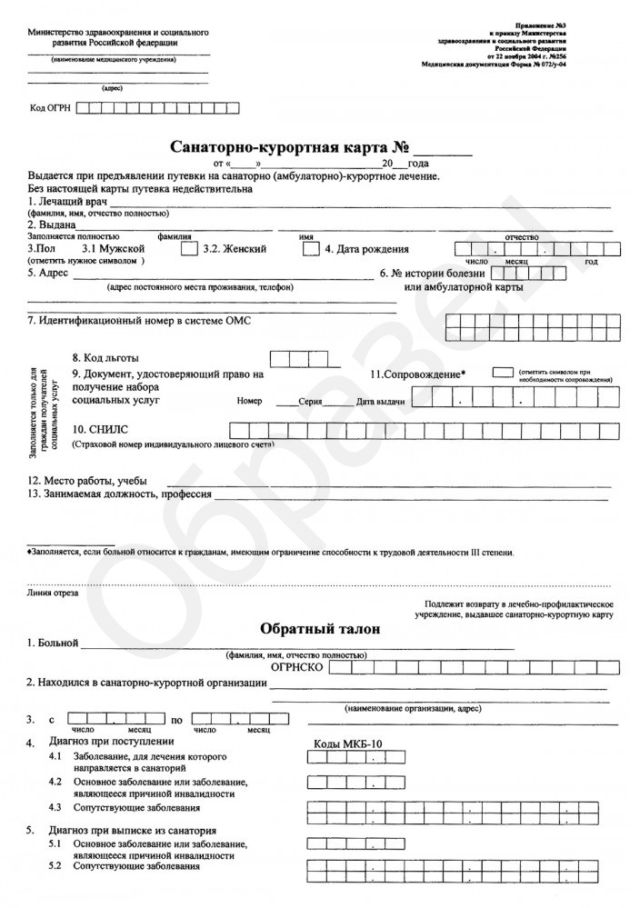 Процесс оформления санаторно-курортной карты форма 072/у-04 включает несколько этапов: