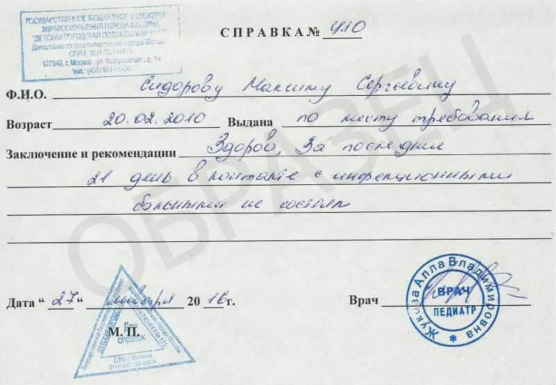 2. Отсутствия опасности для окружающих – во время процедуры доктор выявляет контакты человека и его родных. Бумага выписывается только после того, как врач удостовериться, что пациент не носитель опасных микробов.